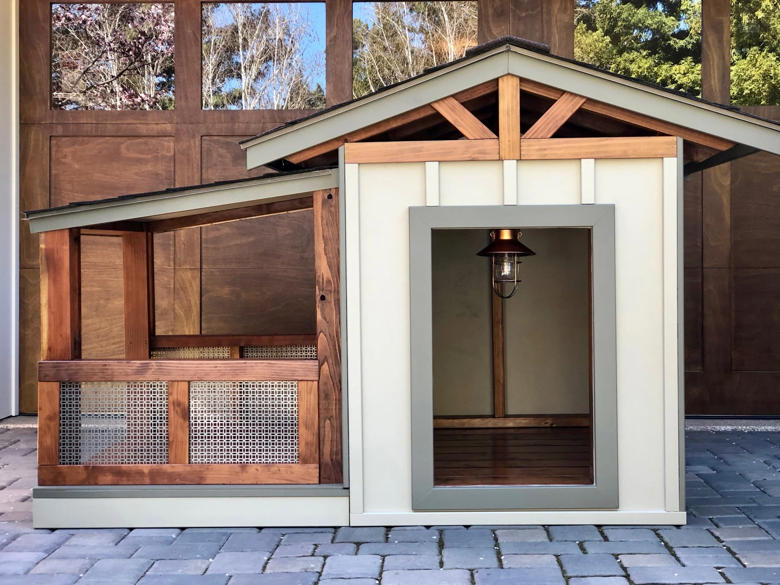 Dog House Diva specializes in high-end custom dog houses that typically range in price between $2,500 & $10,000, and are handmade by the Diva, Erin Olsen, herself. Erin’s dog houses are not only comfortable lounging spaces for pets, but also beautiful architectural art pieces that add to the beauty of any backyard. All D.H.D. dog houses are customizable by color, size and architectural style, and are not limited to the options shown below. Prices listed are baseline prices, and do not include additional customizations. At this time we are only able to cater to Bay Area residents, but hope to branch out in the near future.